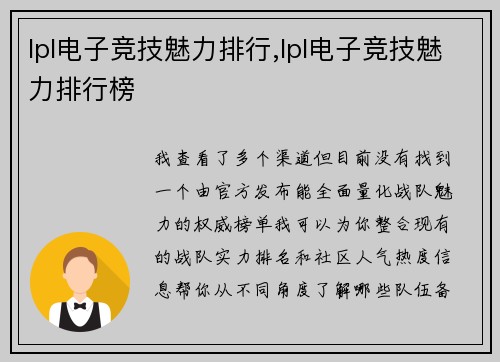 lpl电子竞技魅力排行,lpl电子竞技魅力排行榜